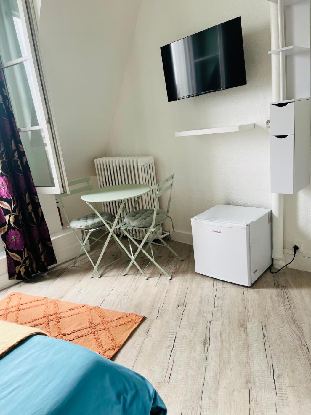 Chambre Double avec Salle de Bains Privative. Offering free toiletries, this double room includes a private bathroom with a shower and a hairdryer. In the well-fitted kitchenette, guests will find a refrigerator, kitchenware, a microwave and a toaster. The double room offers a flat-screen TV with streaming services, a private entrance, soundproof walls, a tea and coffee maker as well as city views. The unit offers 1 bed.